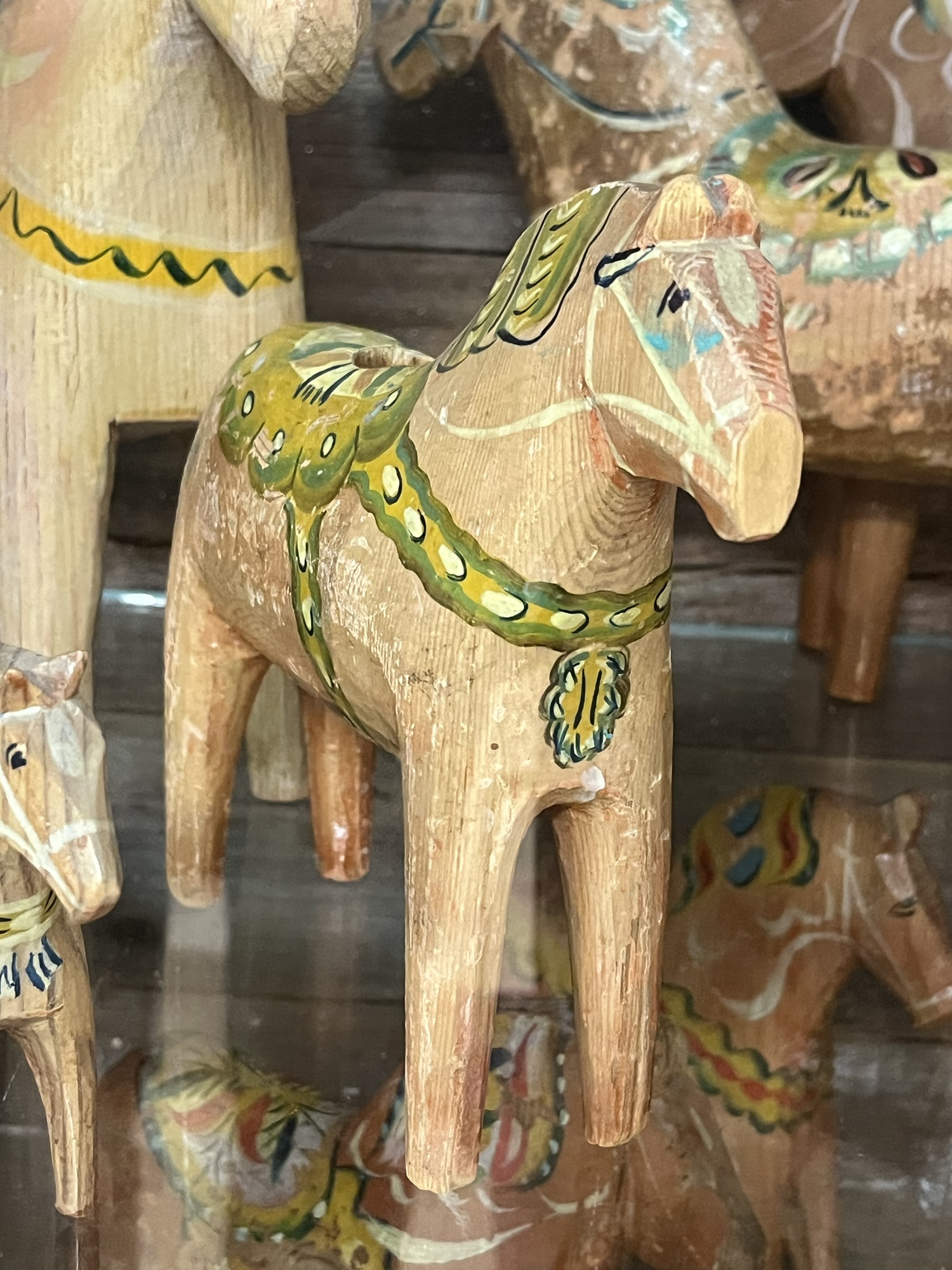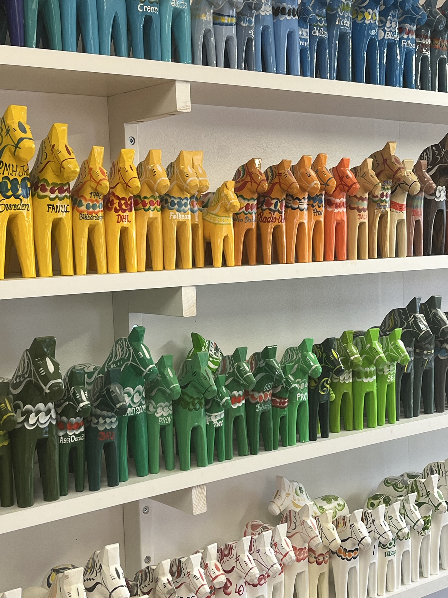 Kurbits is a folk art form with strong ties to Dalarna. It is most often seen on the hand-carved Swedish classic dalahäst – (Dala Horse). We visited the Nils Olsson workshop in the village of Nusnäs that has been in business since the 1920s. We watched the artisans at work as well as a 3D wood cutting machine that makes the horses into many sizes.