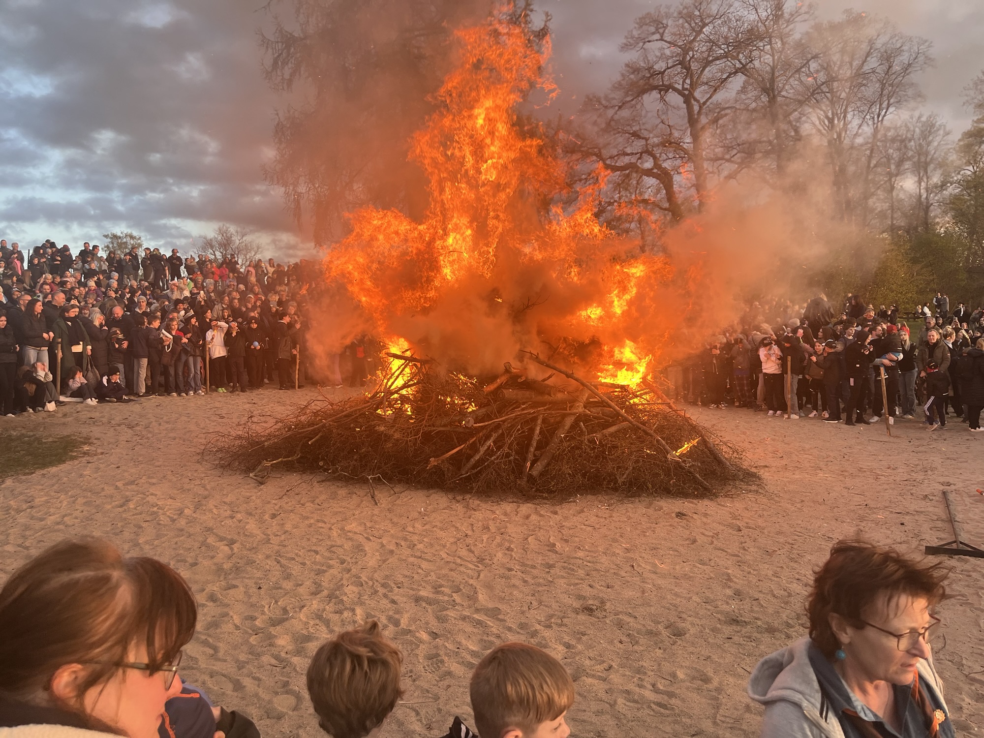 Valborg is celebrated with large bonfires, singing, and gatherings. It’s often seen as a way of celebrating the warmth and light that spring brings. It always occurs on the evening of April 30th. Girls and boys around the age of 12 walk in pairs and circle around the fire and then light it. It’s a pretty low key event with a few vendors on site selling Swedish hotdogs (korv) and cotton candy.