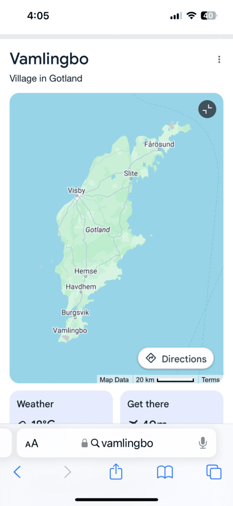 We looked her name up on the family search app as we traveled south from Visby. Along the way we found other ancestors that came from the towns of Näs and Eke. All three towns were within just a few kilometers of each other.